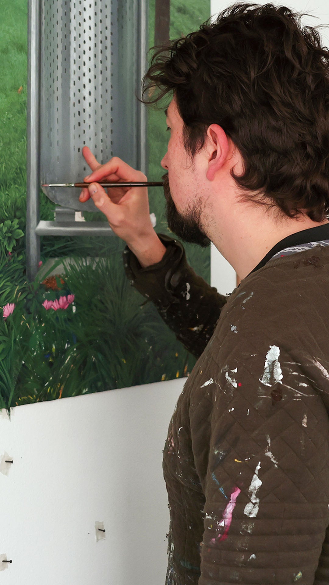 “This image was taken in Miguel's workshop, when the late-afternoon light was reflected on his hands. I wanted to focus on the skin in this painting, on the surface of the body. It's a fragile and resistant thing that can be sensual or grotesque. It's a surface on which a personal and collective story is written.” Juan Camilo Barón (Bogotá, 1988)
