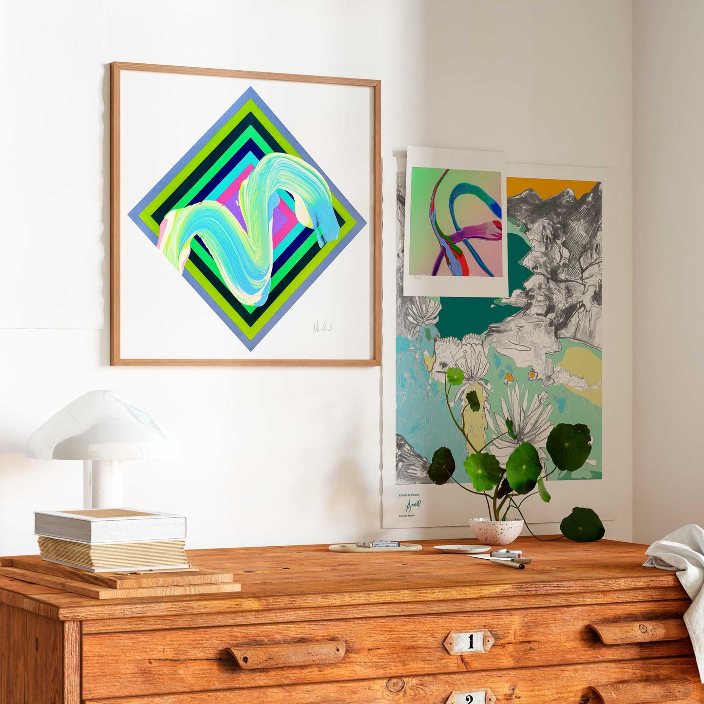 María Duque’s geometric art print Alegorizado 3 is vibrant in colour with an expressive sweep of paint that adds movement and rhythm to the design. A distinctive geometric art print with a contemporary twist, Alegorizado 3 is an eye-catching addition to your modern interior.