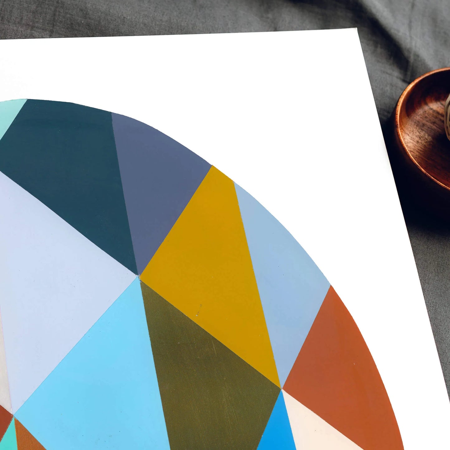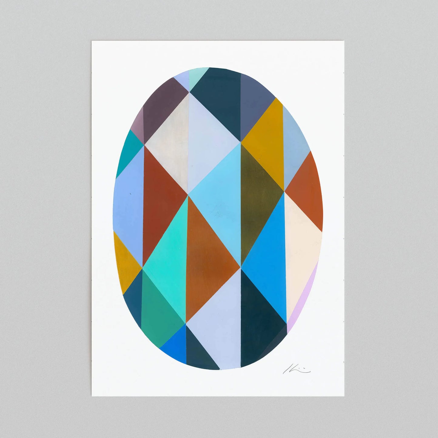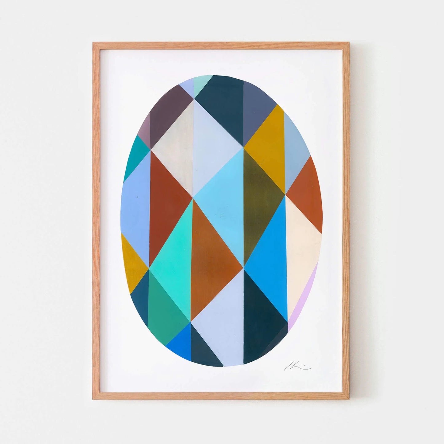 Harlequin Egg II by Juana Gaviria is a vibrant geometric art print that blends playful energy with refined modern design. Inspired by Picasso’s Harlequins and the ornate beauty of Fabergé eggs, this striking composition is filled with colourful triangles arranged in a rich yet cool palette. The result is a design that feels exuberant, balanced and unmistakably unique.