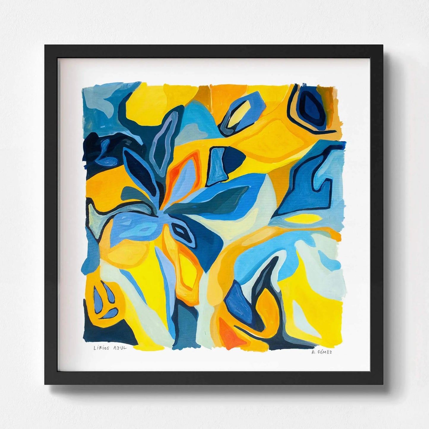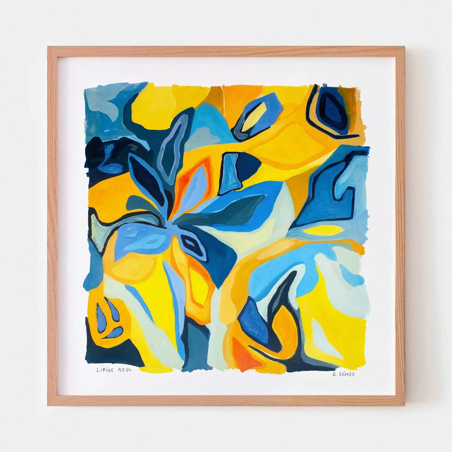 Lirios Azul by Ane Gómez is a luminous and colourful art print inspired by the artist’s poetic exploration of nature and perception. One of two works centred on lilies, this piece shifts the focus to cool blue tones. Originally painted in oils to convey calm, depth and fluid organic movement, the suggestion of lilies remains intentionally abstract, balancing recognisable natural forms with expressive freedom and emotional resonance.
