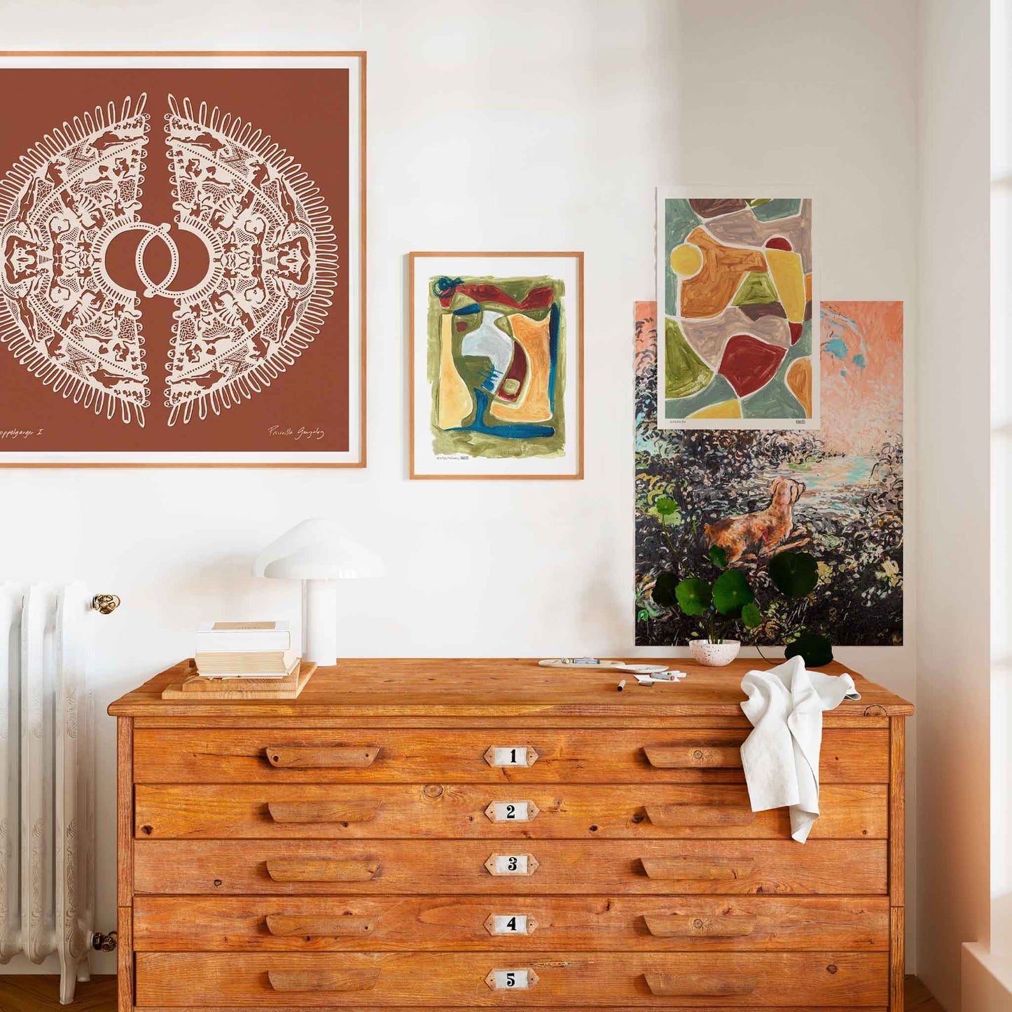 Rich browns, greens and oranges form the colour theme for our Earth Tones print collection. Curated to maintain visual interest across an earthy colour palette, this collection brings together a unique variety of styles, textures and subjects to fill your walls with life. Abundant in warmth and depth, when hung together these prints create a rich and welcoming atmosphere.