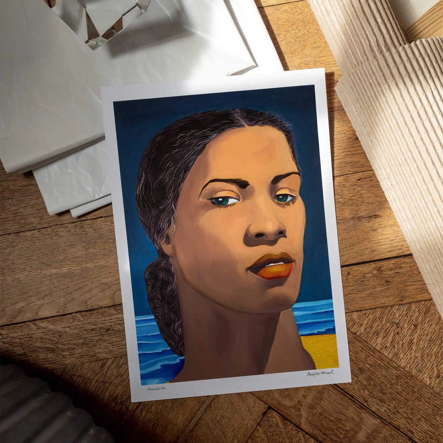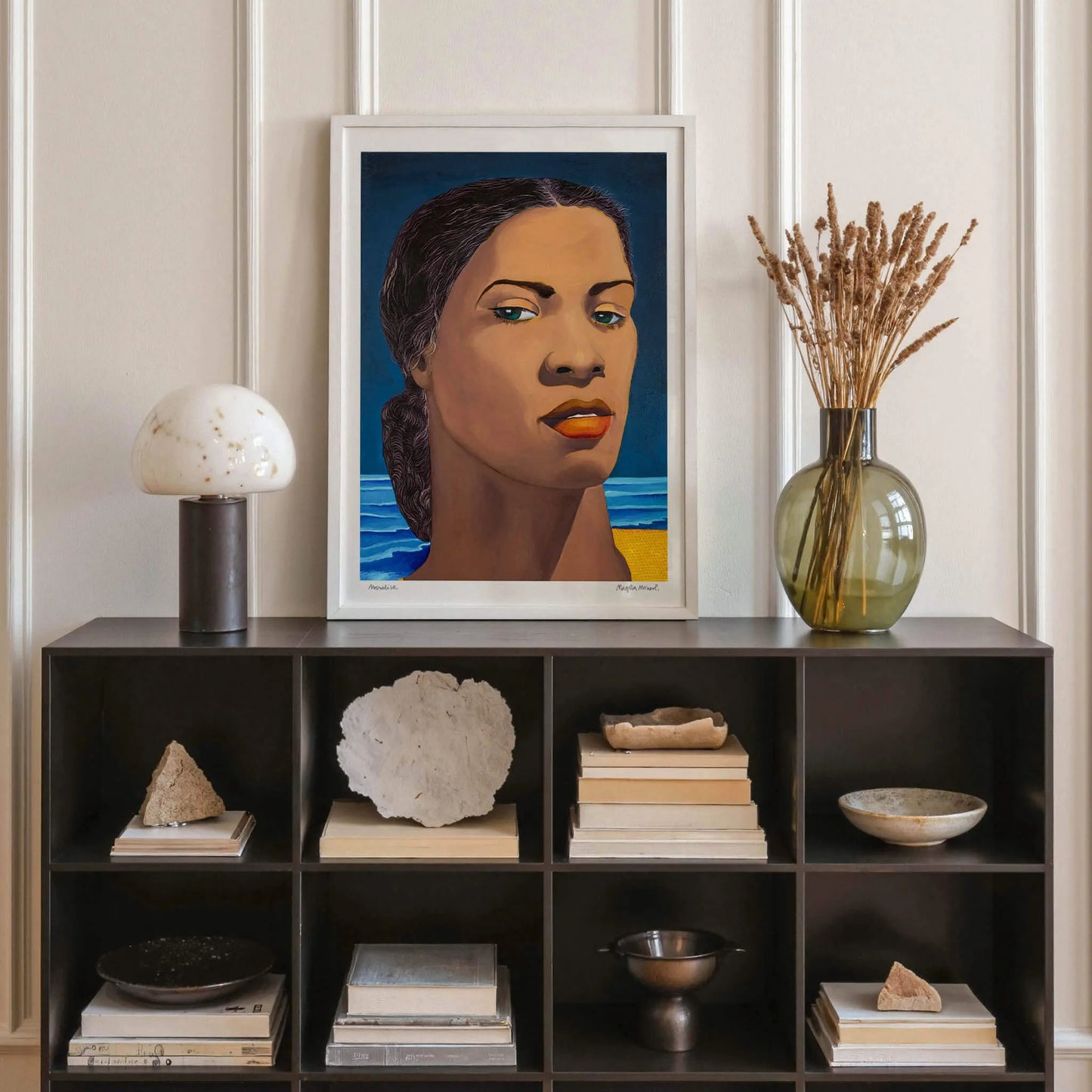 Mona Lisa by Magola Moreno is a powerful and unique art print that reimagines one of the world’s most iconic images as a tribute to female strength and presence. In this bold portrait, the sitter meets the viewer’s gaze directly: confident, unwavering and unapologetic in her right to occupy space. Though modest in scale, the impact of this Mona Lisa print is anything but small.