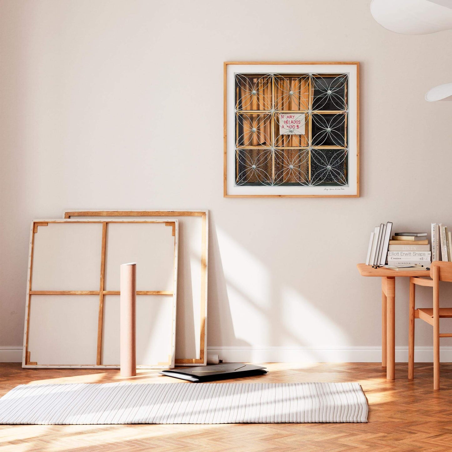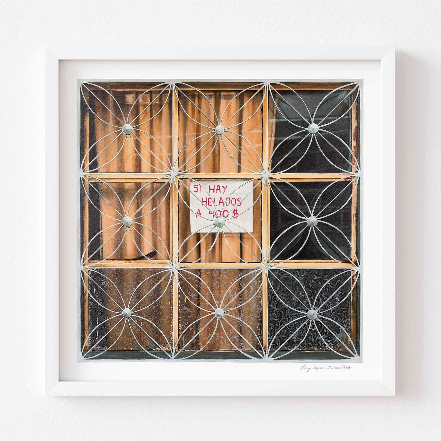 An inconspicuous window with a small advert for homemade ice cream tells a larger story of hard work and resourcefulness when times are tough. This contemporary art print by J&L Constructores pays homage to the drive and creativity that keeps Bogotá moving forwards and gives it its distinctive character.