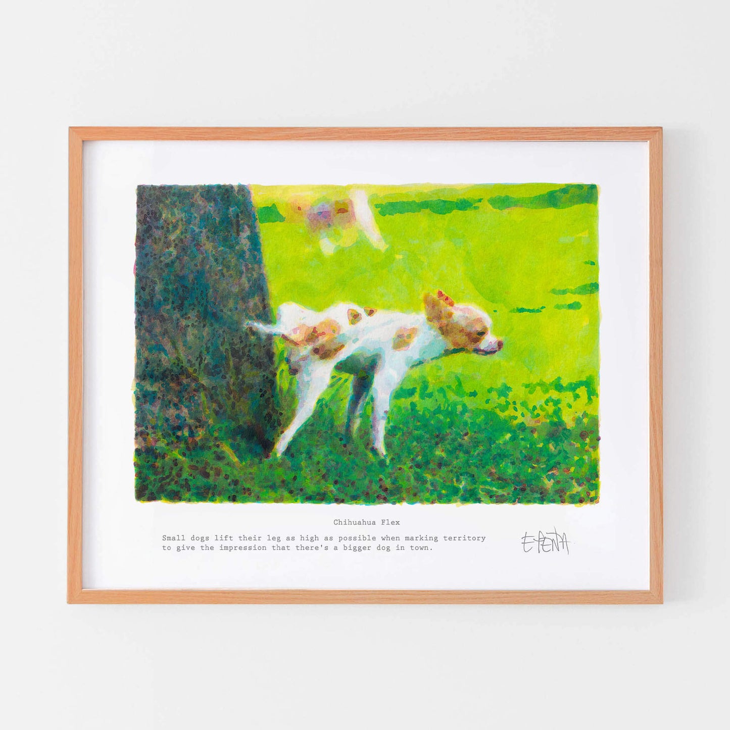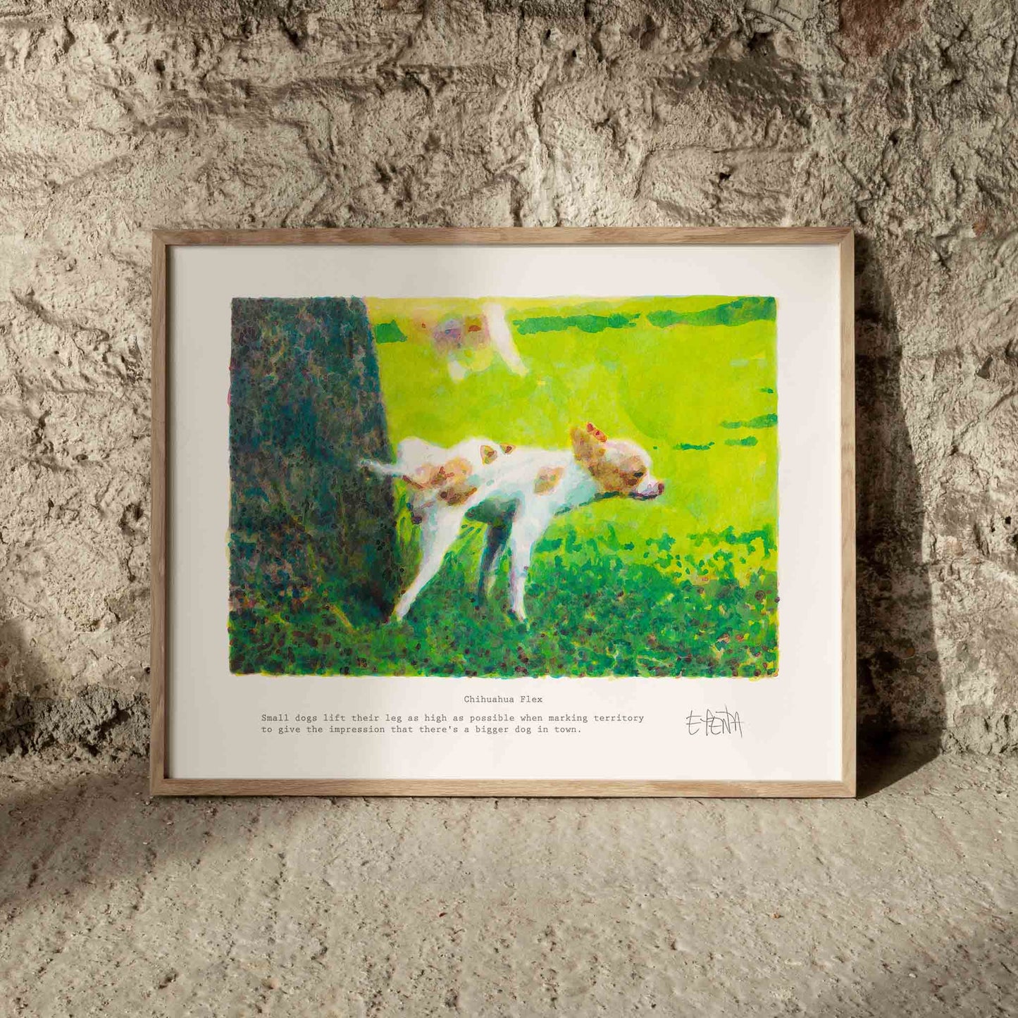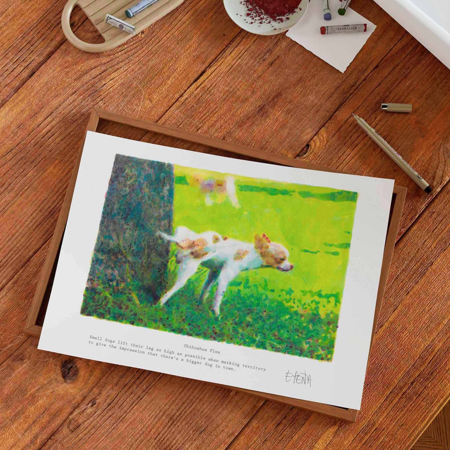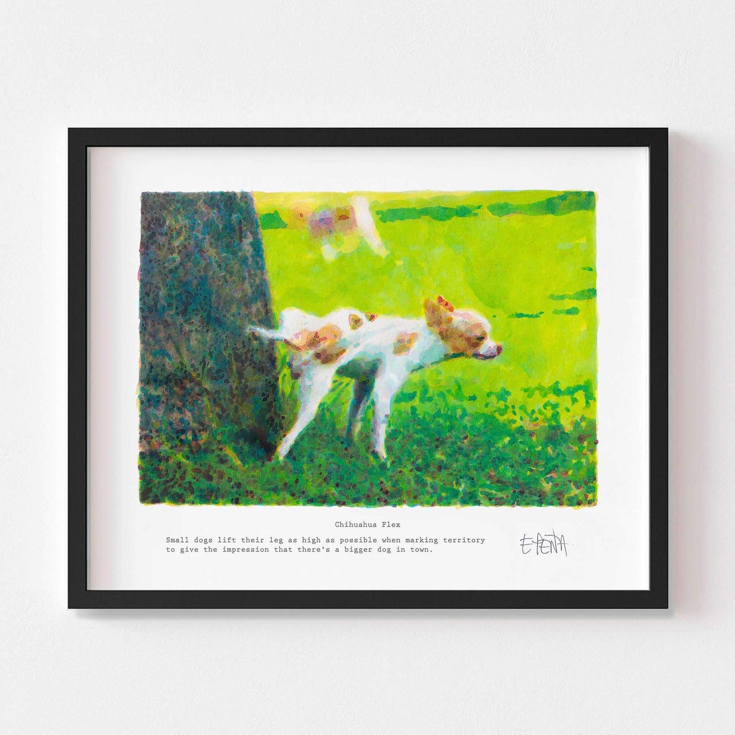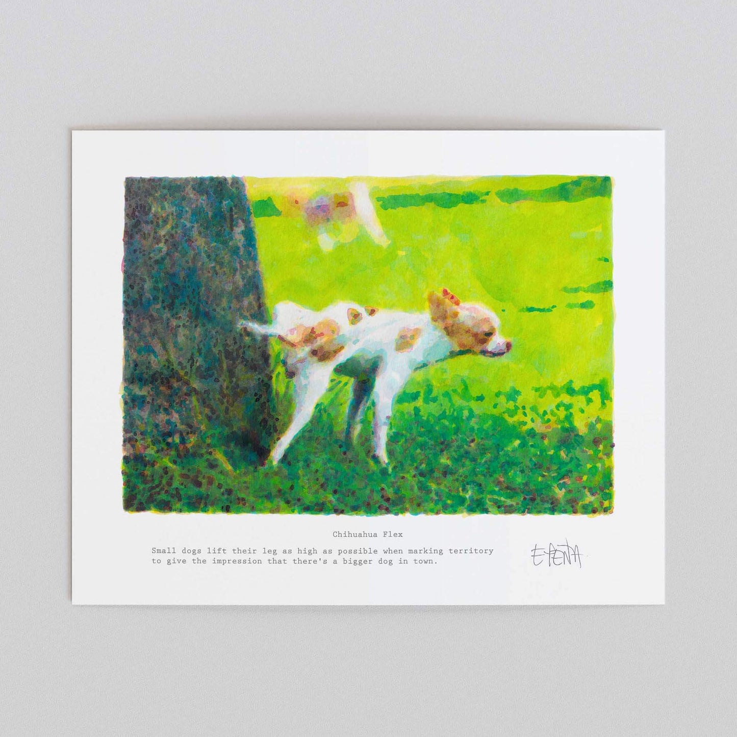 Esteban Peña's small art print Chihuahua Flex is a unique take on portraits of dogs and offers a contemporary twist for the homes of animal lovers.
