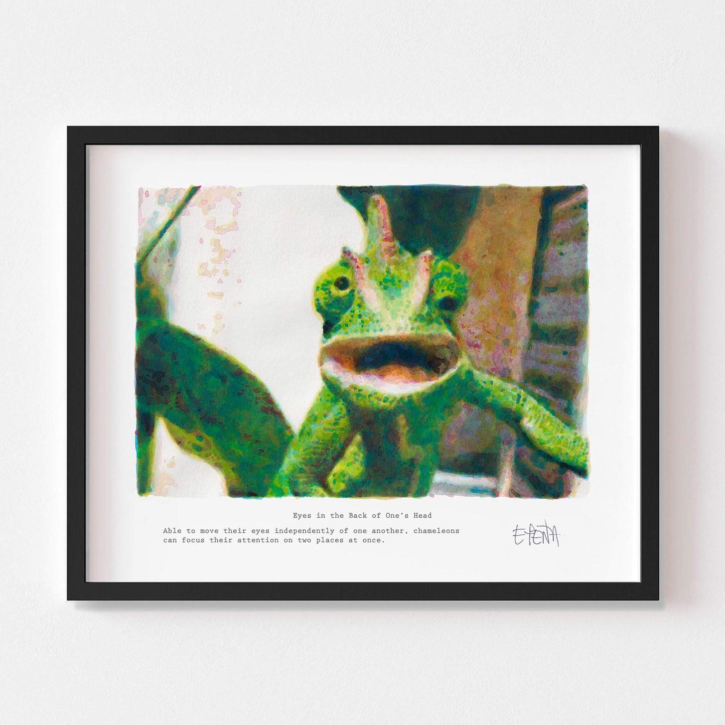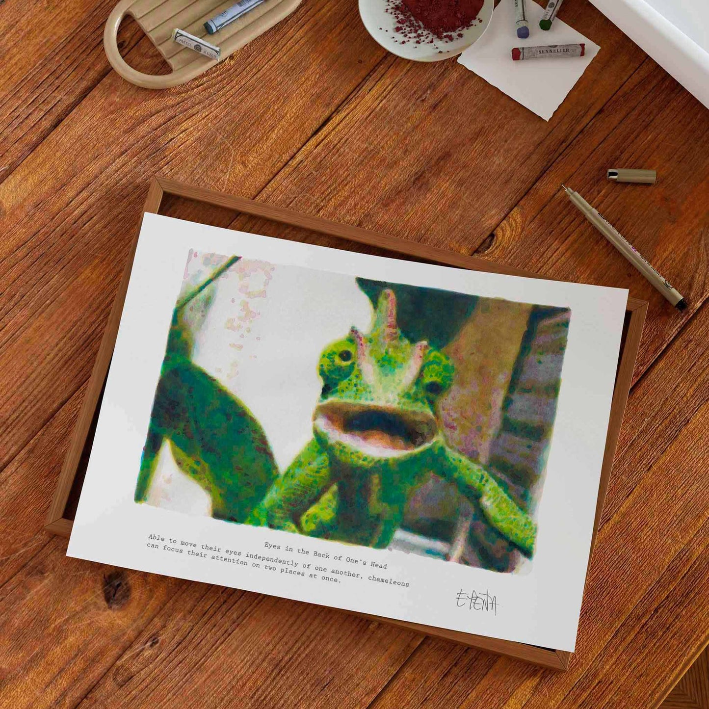 A firm favourite with parents of small children and owners of rebellious pets, Eyes in the Back of One’s Head is sure to provoke a smile when you hang it in your home or gift it to someone who’ll sympathise with our wonky-eyed chameleon!