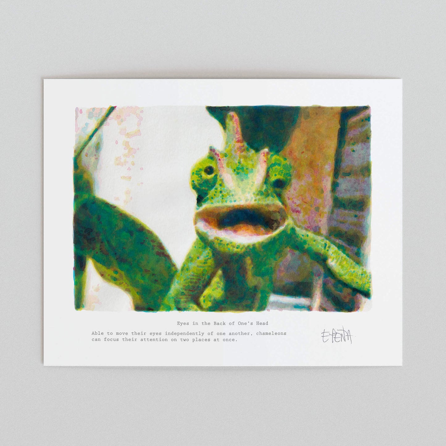 Eyes in the Back of One’s Head is a small art print taken from Esteban Peña's You Animal! series of paintings, which makes humorous comparisons between the human and animal worlds.