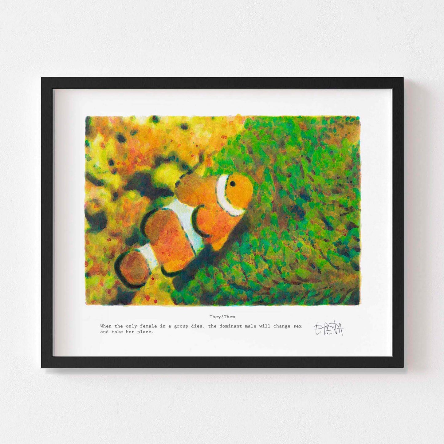 They/Them celebrates the flexibility, fluidity and freedoms of the animal world. Taken from his You Animal! series of paintings, They/Them combines Esteban’s quirky sense of humour and fascination with the natural world by drawing parallels between human and animal behaviours.