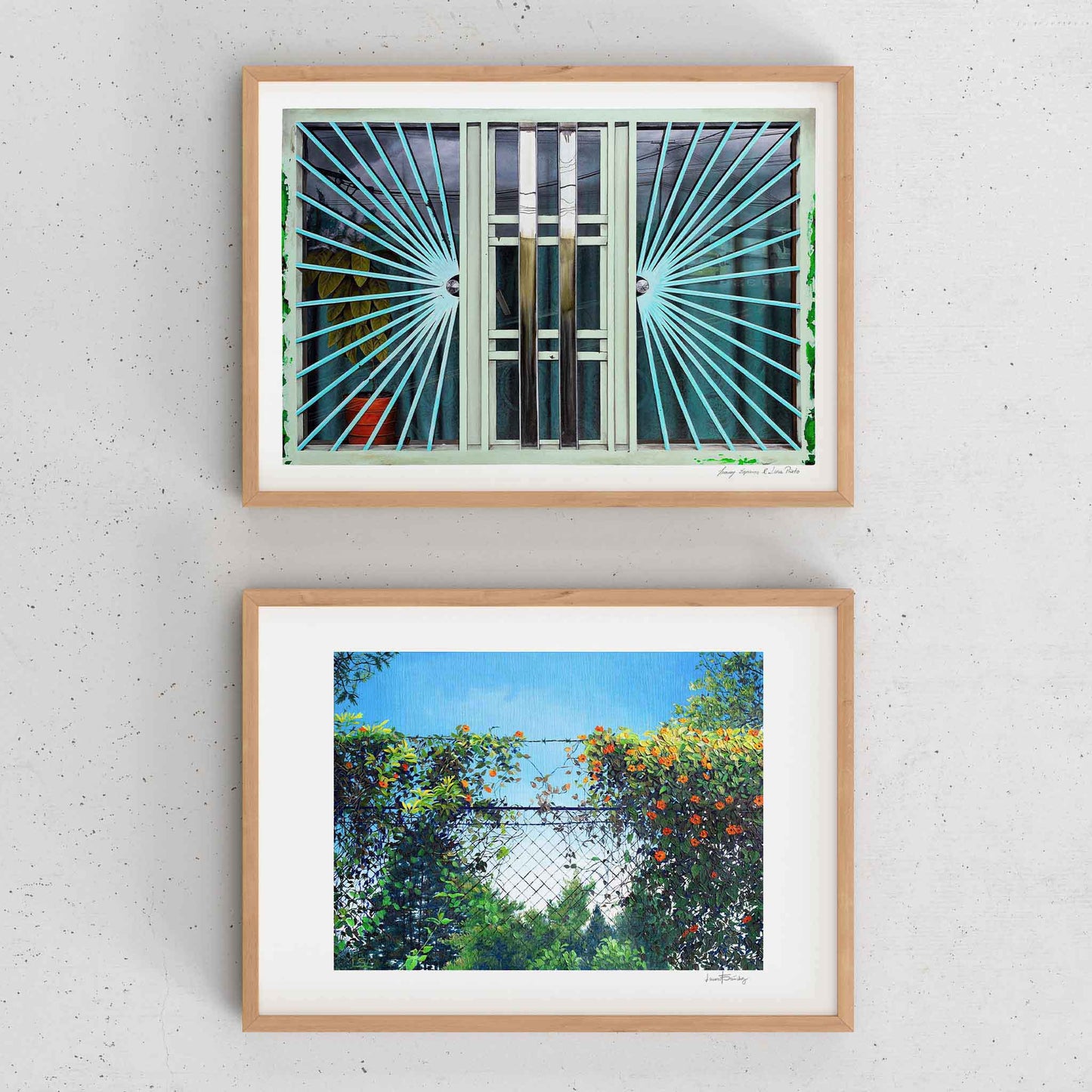 Celebrate the raw, creative energy of city life with the Urban Print Pair, a bold art duo that captures the untamed spirit of the metropolis. From nature pushing back against barbed wire to the distinctive ways residents personalise their homes, these prints tell powerful stories of resilience, identity, and self-expression.