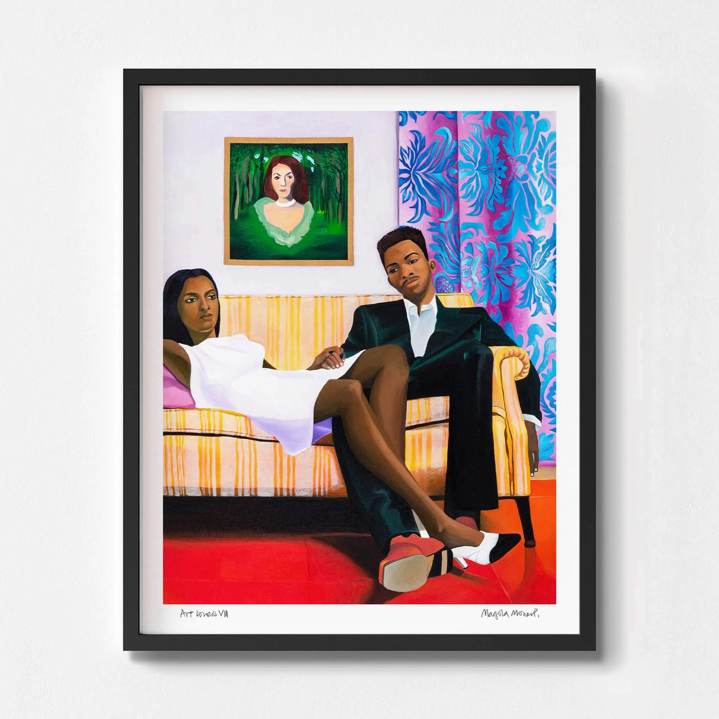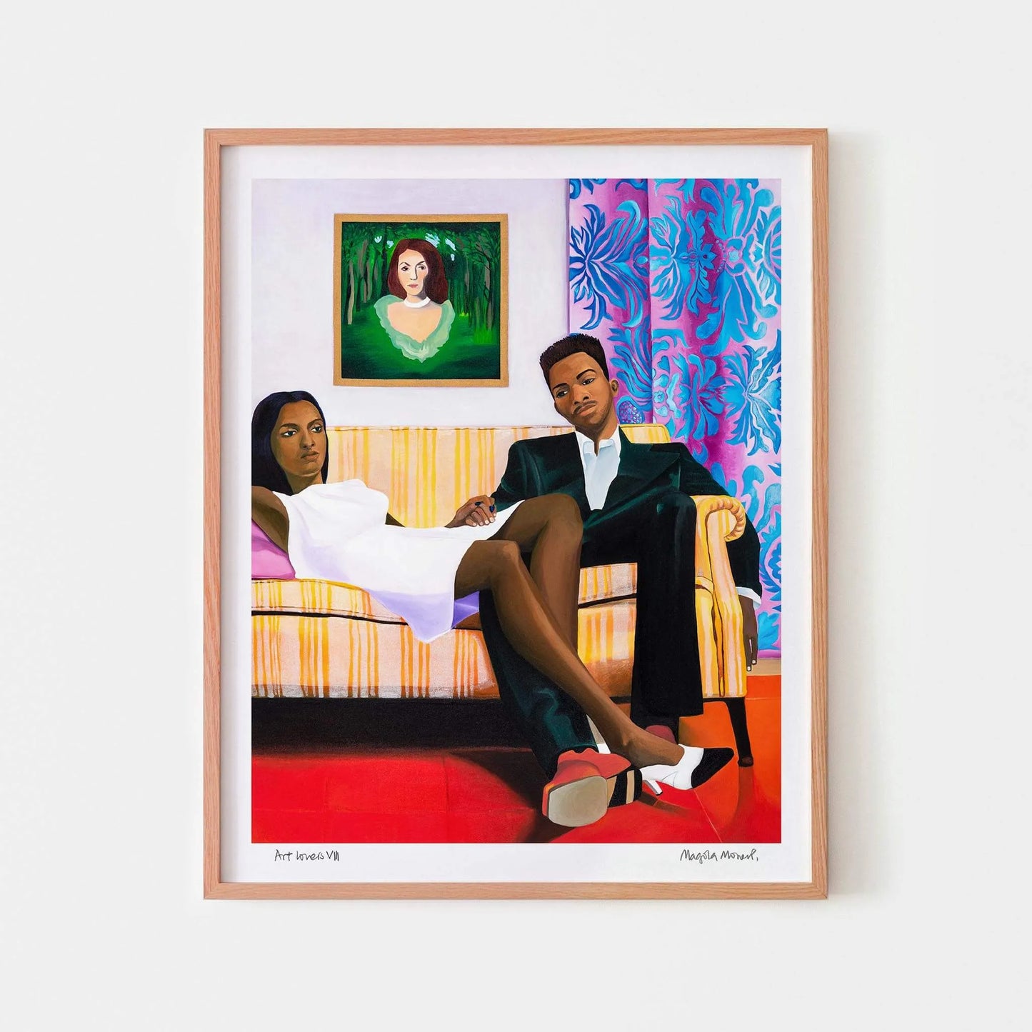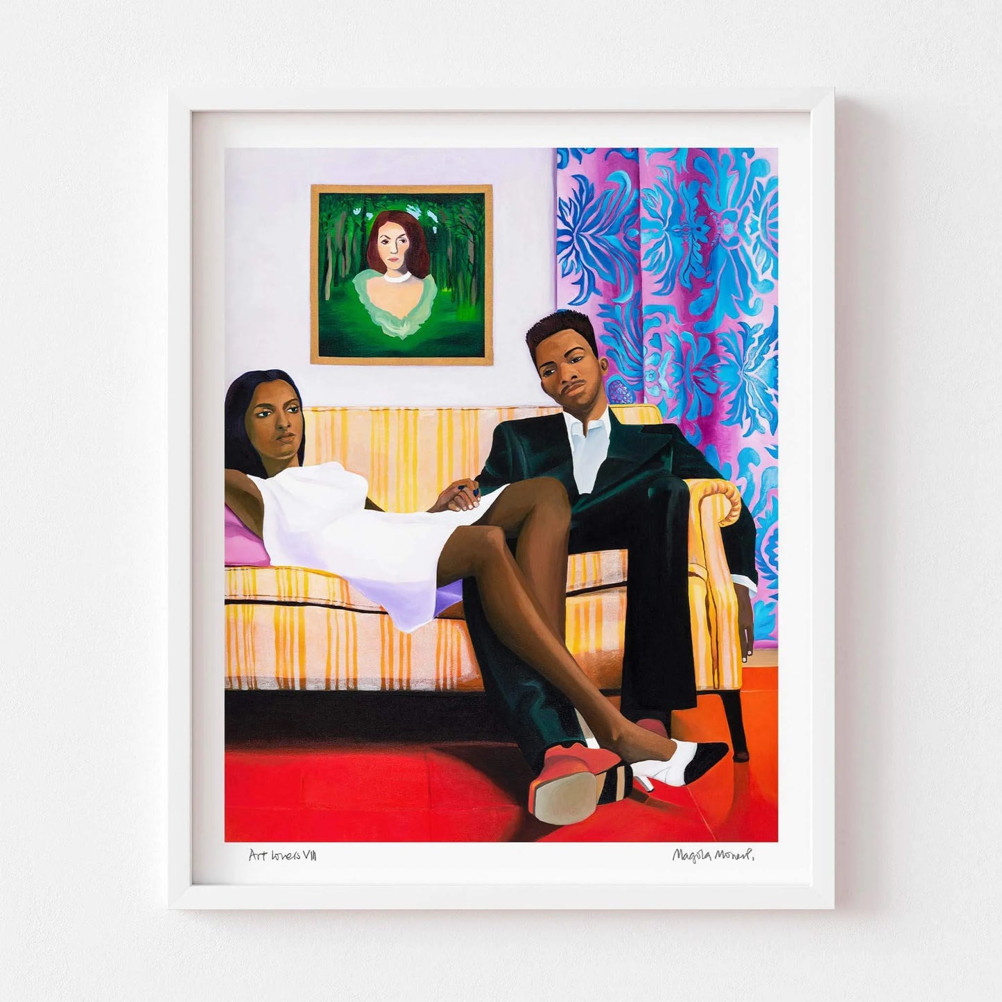 Beyond its narrative richness, Art Lovers VIII by Magola Moreno captivates with its use of colour, composition and intricate detail, revealing something new with each viewing. Ideal as a bold focal point in the home, this unique art print transforms social spaces into eye-catching, conversation-starting environments. Moreno’s work is imaginative and deeply personal, questioning perspective while offering a fictional, reflective world. With Art Lovers VIII, you gain a piece that is both visually striking and intellectually engaging. A modern statement artwork for collectors who value colour, storytelling and the power of contemporary art.