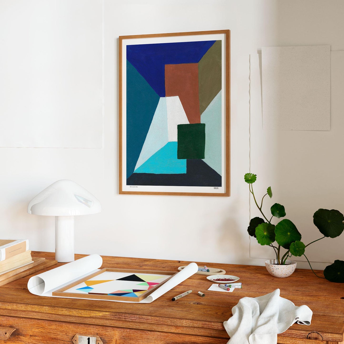 Our Blue in Hue art print collection is perfect for layering different blues in the home. Classic shades of ultramarine are paired with sophisticated shades of navy, while highlights of bright blue and cyan lift the overall feel, preventing a sensation of flatness. Darker, geometric prints are balanced by free and expressive sketches to add space and light to the collection.