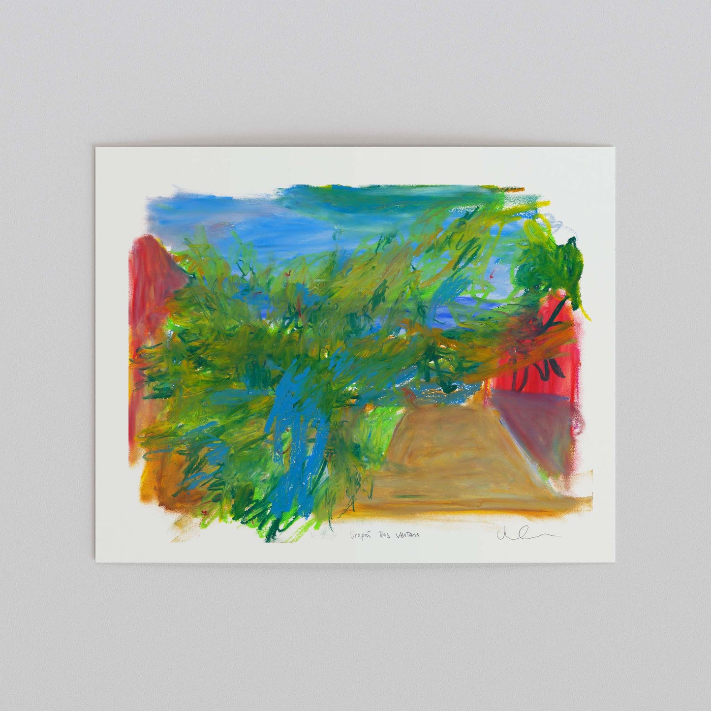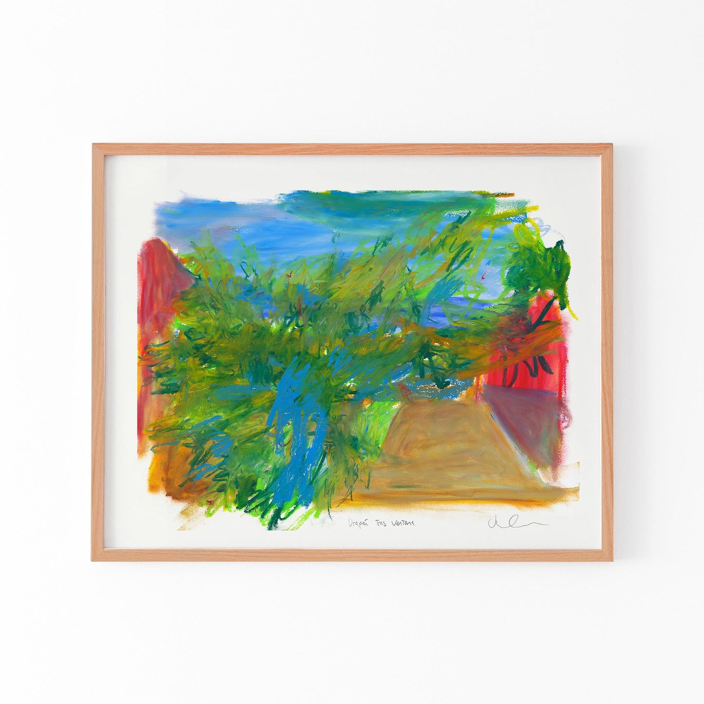 Bursting with gesture and life, Urapán tras ventana is a colourful landscape print taken from Juan’s sketches of an Urapán tree (Chinese Ash) outside his living room window in Bogotá. It’s an ode to the lush trees of Colombia’s capital and promises to bring an energetic and uplifting burst of colour to your walls.