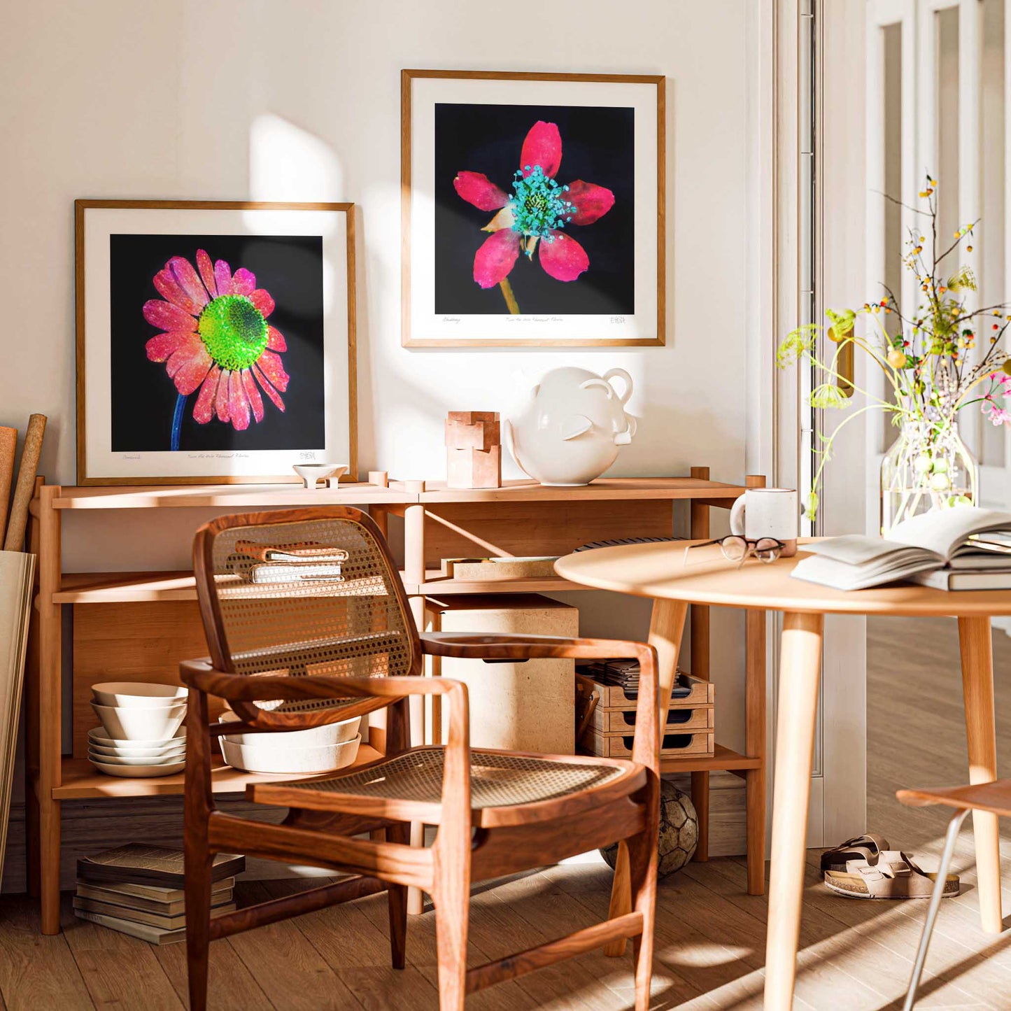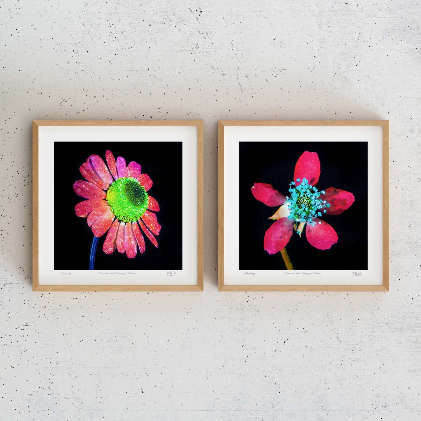 The Camomile and Blackberry art prints from Esteban Peña's Fluorescent Flowers series are a contemporary floral pairing that you won't find anywhere else. Electric pinks, blues and greens add a modern touch to a time-honoured subject. Hang in the hallway for maximum impact when visitors arrive, or add a pop of colour to the social spaces in your home.