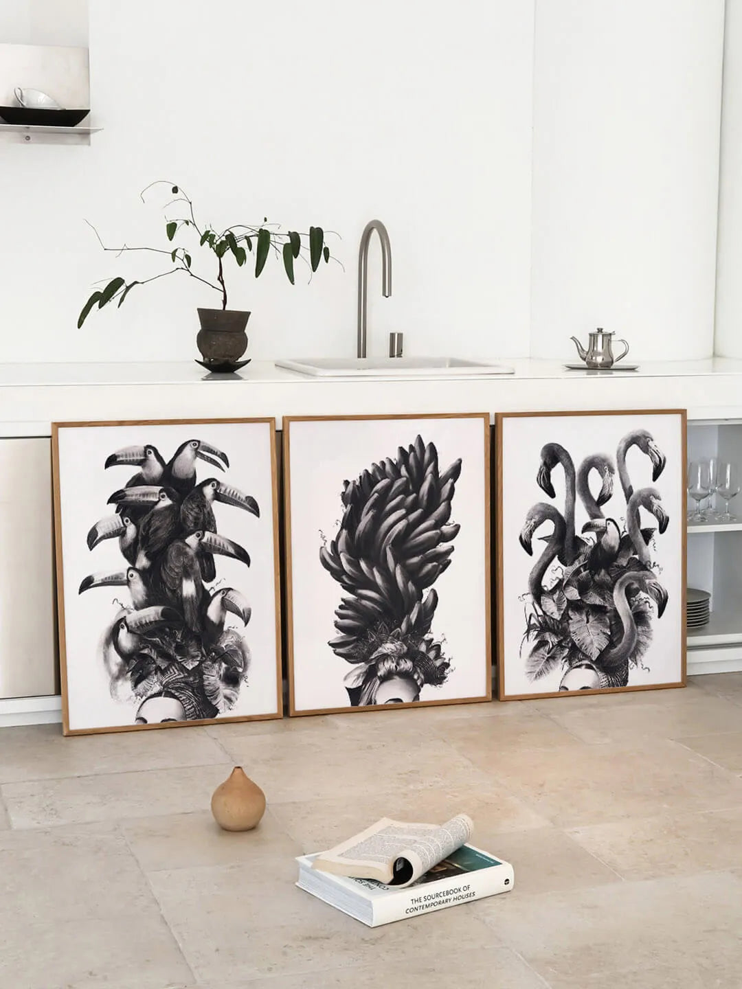 Each print is crafted to command attention while remaining beautifully balanced. Display these pieces in light, neutral spaces to introduce contrast and visual richness, or incorporate a darker backdrop to create a confident, maximalist look. The interplay of saturated color and thoughtful composition adds instant character to any room.