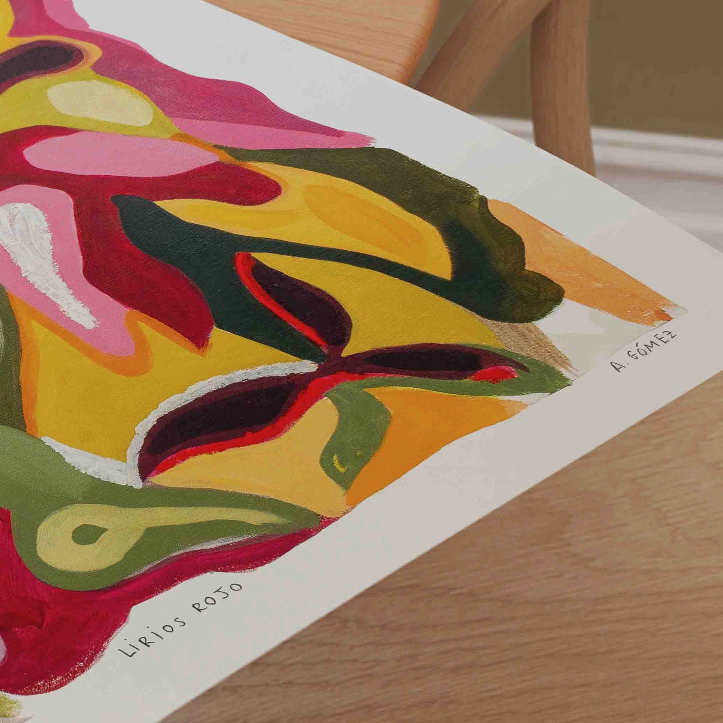 Add expressive colour and refined artistry to your space with the Lirios Print Pair by Ane Gómez, featuring Lirios Rojo and Lirios Azul. This striking duo brings together bold floral forms and contemporary abstraction, creating a balanced yet dynamic visual pairing.