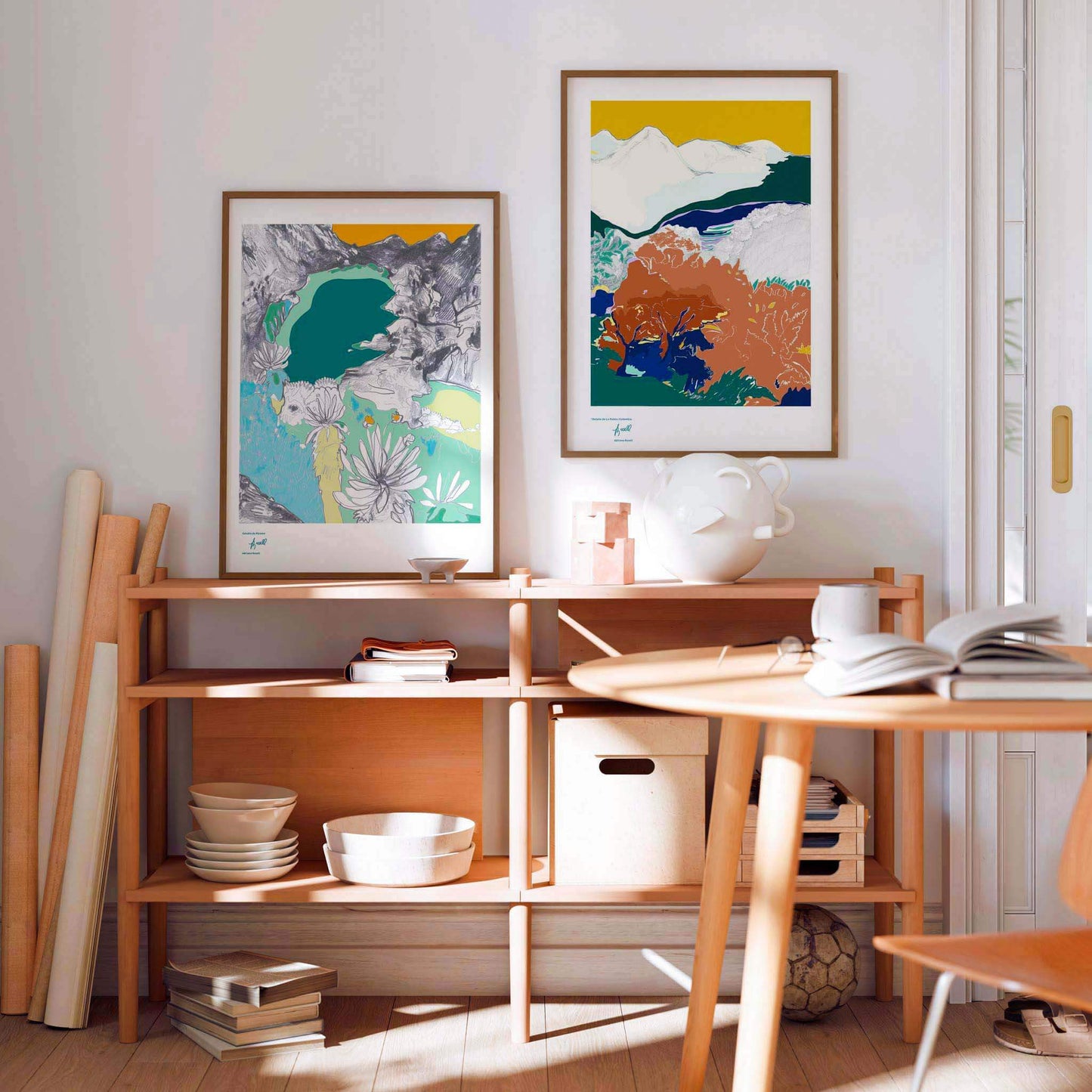 Unusual in design, Paisajes Imaginarios is a fresh and unique option for your walls - a landscape print that's classic in theme but with the added contemporary twist of blocks of colour and flattened planes.